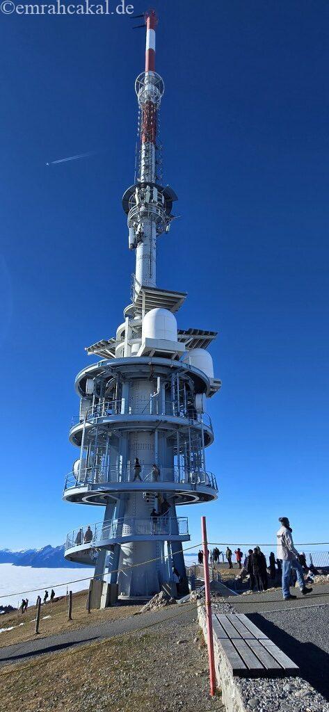 Tepede bulunan radyo anteninin orta katlarına kadar çıkılabiliyor ve ayrıca ilginç bir detay olarak Çin’den getirilen büyük bir bazalt kaya yer alıyor. Bu taş, Çin’in kutsal dağı Emei Shan’dan getirilmiş ve Rigi Dağı ile Emei Shan arasında yapılan kültürel iş birliğinin simgesi olarak 2015 yılında Rigi Kulm zirvesine yerleştirilmiş.