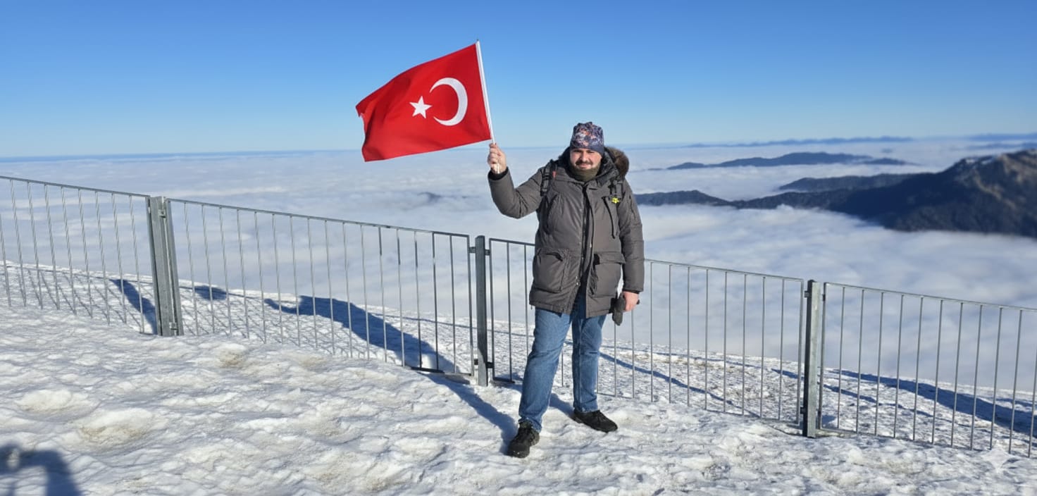 Zirvenin her bir yönü ayrı bir görsel şölen gibiydi. Bulut denizinin üzerinden yükselen diğer dağların tepe noktaları, güneşin parlamasıyla birlikte beyaz, karlı zirvelerle birleşince ortaya son derece etkileyici bir manzara çıkıyordu. O an yaşattığı his, kelimelerle anlatılması zor; gerçekten çok güzel ve unutulmaz bir deneyimdi.