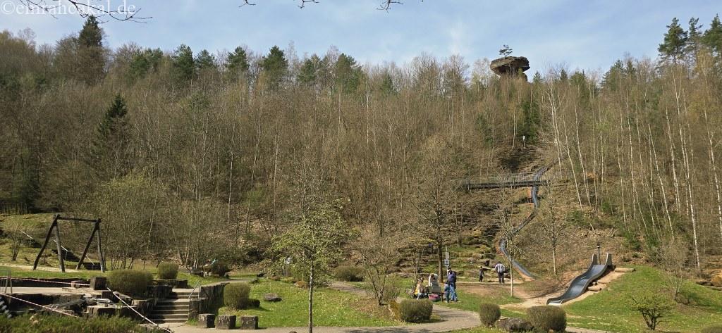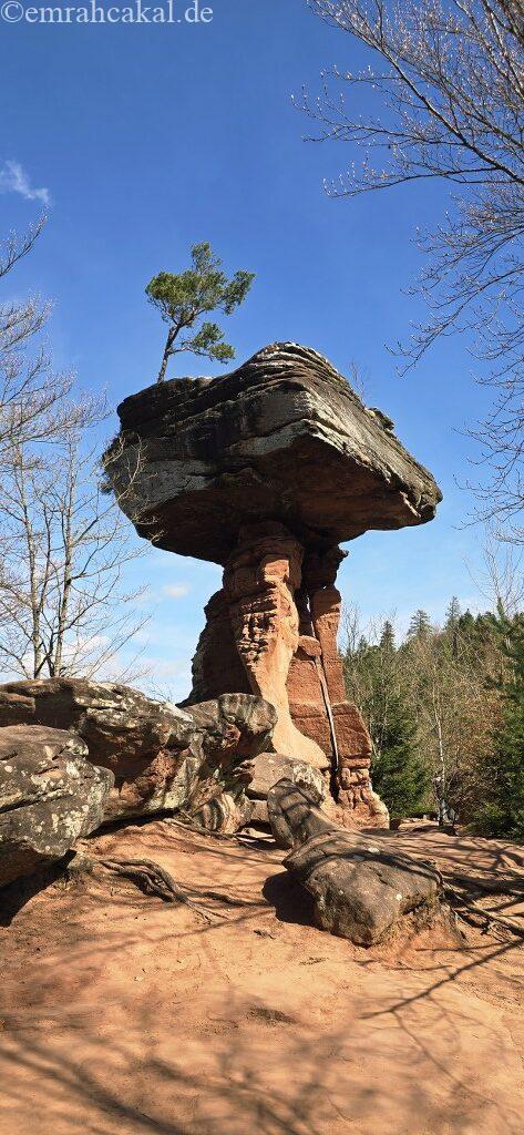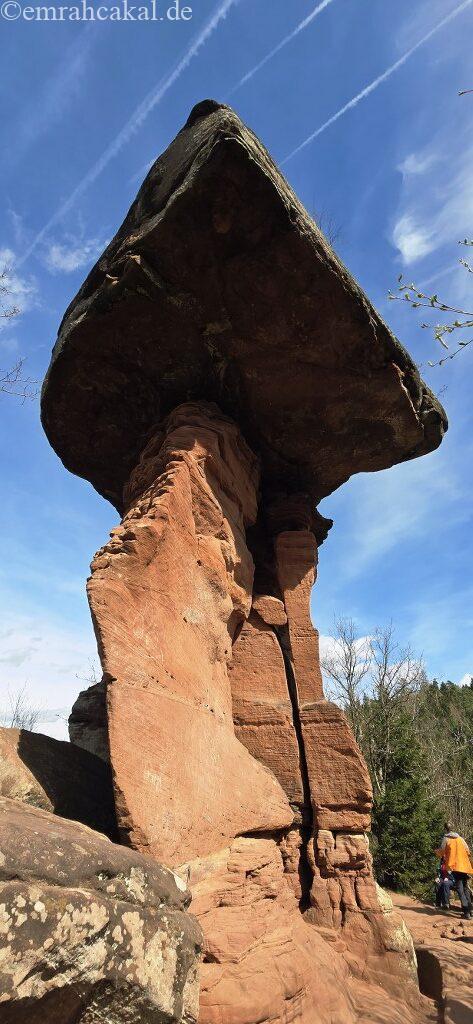 Pfalz ormanlarina dogru yola çıkıp hem doğayla iç içe olalım hem de çocuklar sıkılmadan güzel vakit geçirsin diyorsanız, size gerçekten nokta atışı bir önerim var: Hinterweidenthal’daki Teufelstisch!