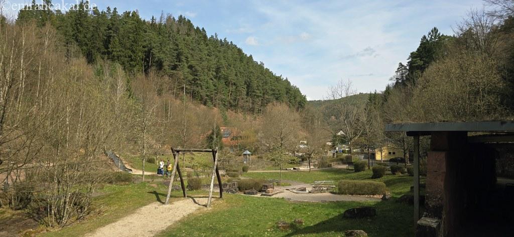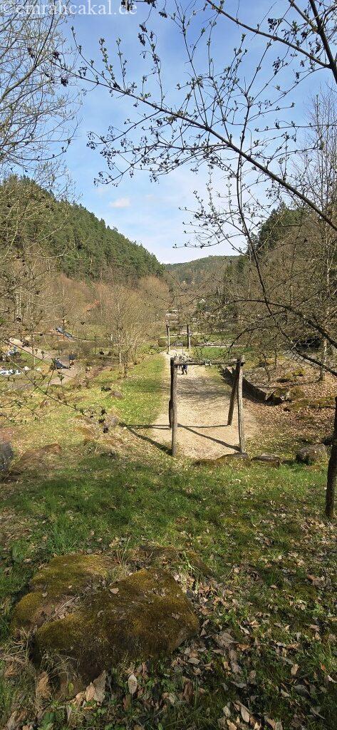 Teufelstisch’in hemen altında yer alan Erlebnispark, çocuklar için tam anlamıyla bir macera dünyası. Ama klasik bir oyun parkı beklemeyin. Burası daha çok çocukların hem oynayıp hem keşfettiği, doğayla temas ettiği bir alan.