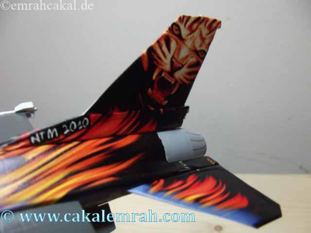 Türk Hava Kuvvetleri’ne bağlı 192. Kaplan Filo’nun özel kaplan temalı bu eşsiz uçak boyamasını, 1/72 ölçekli Tamiya F-16 modelime uyguladım.